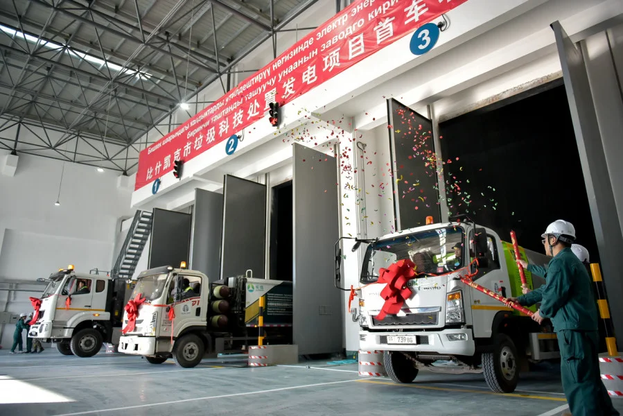 В Бишкеке состоялся первый тестовый завоз твердых бытовых отходов на мусороперерабатывающий завод. Мероприятие прошло с участием Министра природных ресурсов, экологии и технического надзора КР Медера Машиева и мэра города Айбека Джунушалиева, а также других официальных лиц. В рамках пилотного проекта 17 единиц специальной техники выполнили по одному рейсу, доставив в общей сложности 126 тонн отходов.
