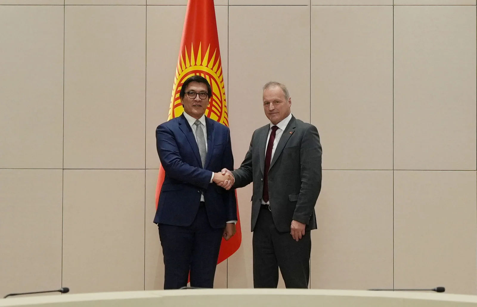 В Бишкеке состоялась встреча заместителя председателя кабинета министров Эдиля Байсалова с первым вице-спикером Национального совета Швейцарской Конфедерации Пьер-Андре Пажем. В ходе переговоров Байсалов подчеркнул, что Швейцария является надежным партнером Кыргызстана, а также примером устойчивого развития и стабильности в регионе.