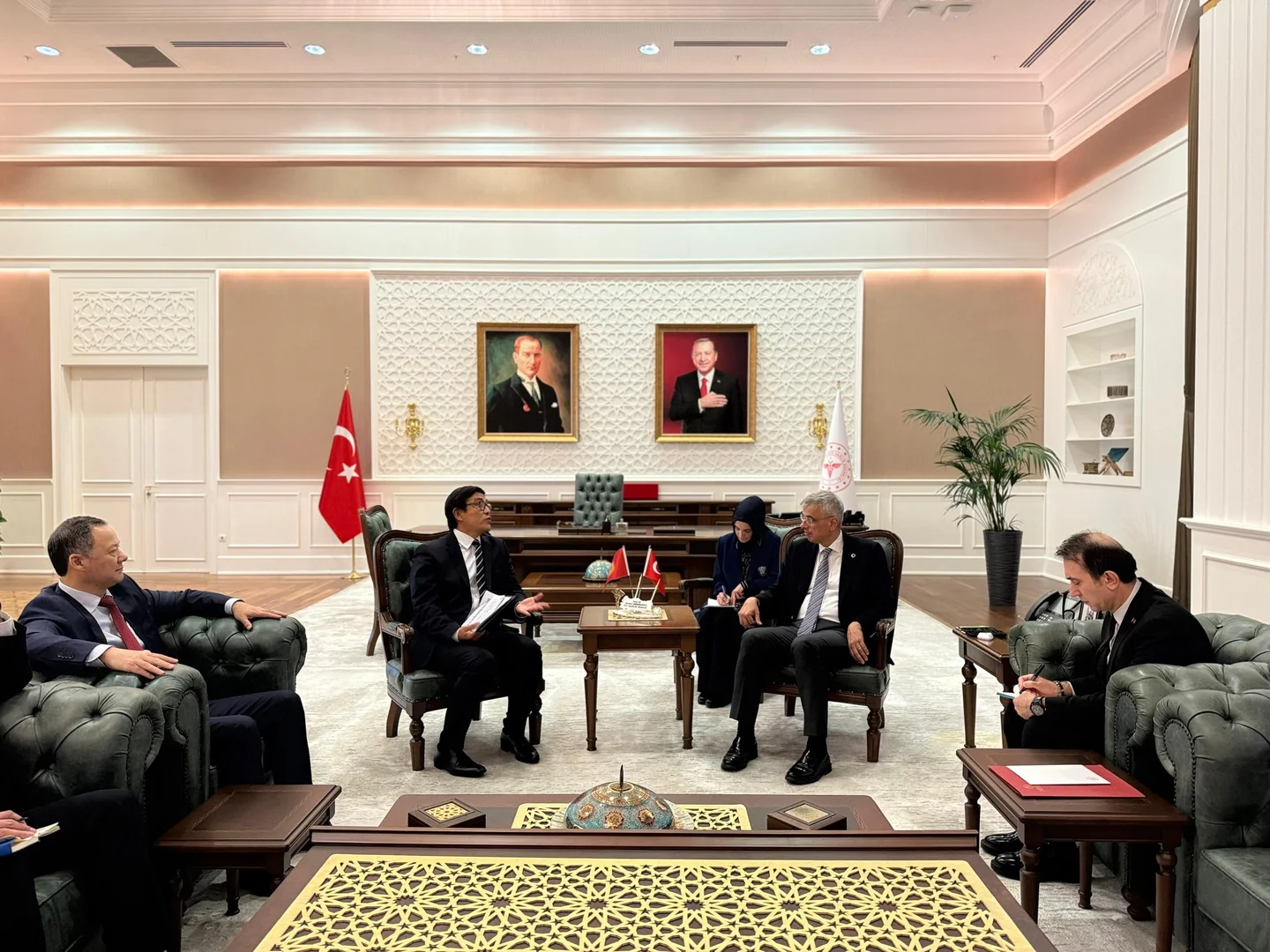 Кроме того, Эдиль Байсалов провел встречу с министром здравоохранения Турции Кемалем Мемишоглу, в ходе которой обсуждались вопросы сотрудничества в области здравоохранения, медицинского образования и научных исследований. В Анкаре также состоялась встреча с генеральным директором Турецкой радио- и телевещательной корпорации (ТРТ) Мехметом Захидом Собаджы.