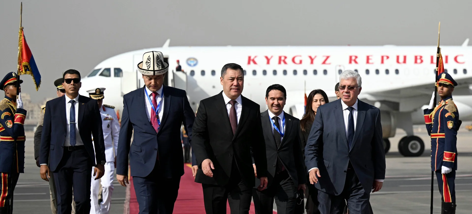 Президент Кыргызской Республики Садыр Жапаров 4 ноября прибыл с официальным визитом в Египет по приглашению главы государства Абдель Фаттаха Ас-Сиси. Самолет с президентом приземлился в международном аэропорту Каира, где его встретили высокопоставленные лица, включая министра высшего образования и научных исследований Египта Мохамеда Аймана Ашура.