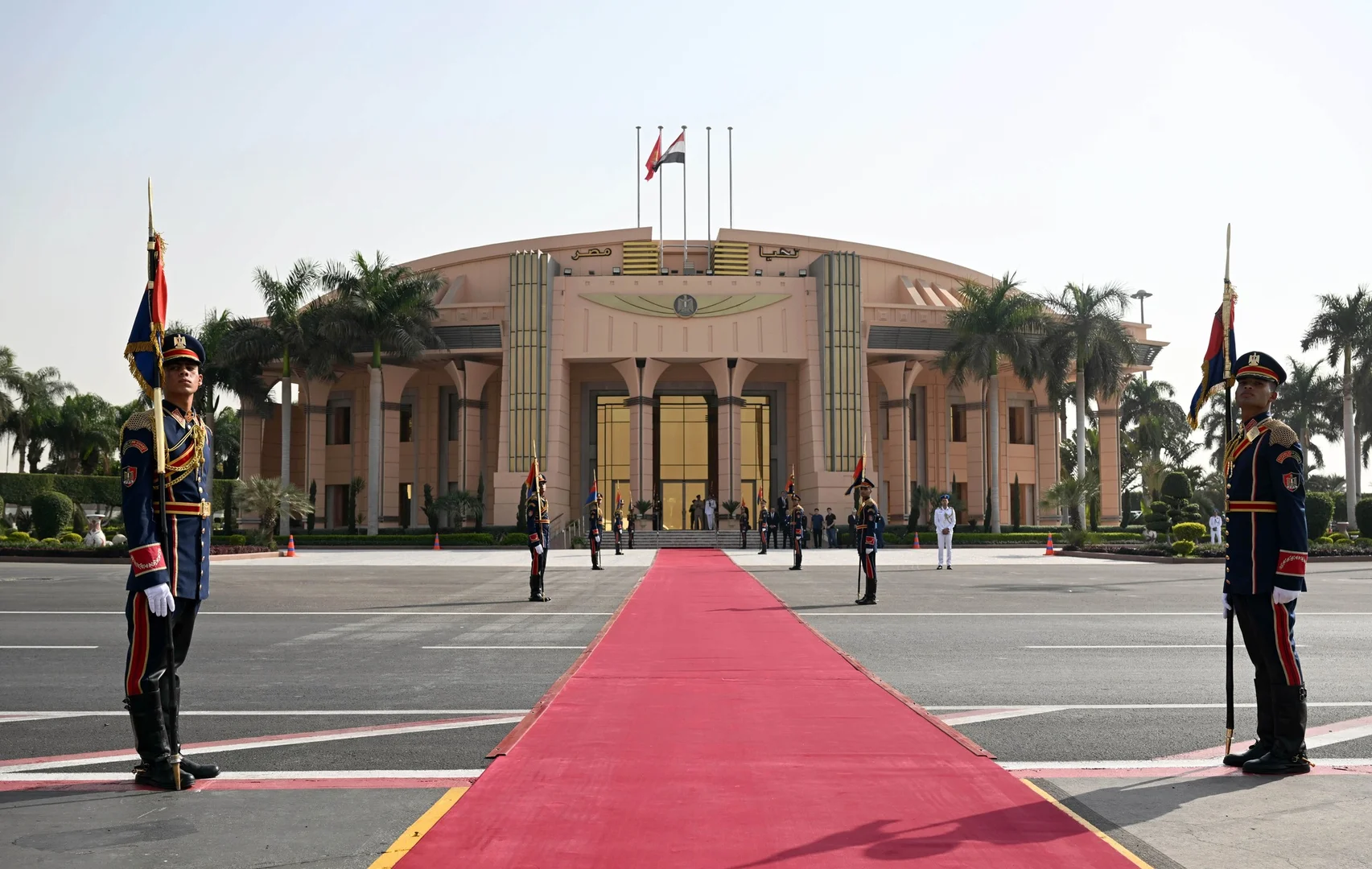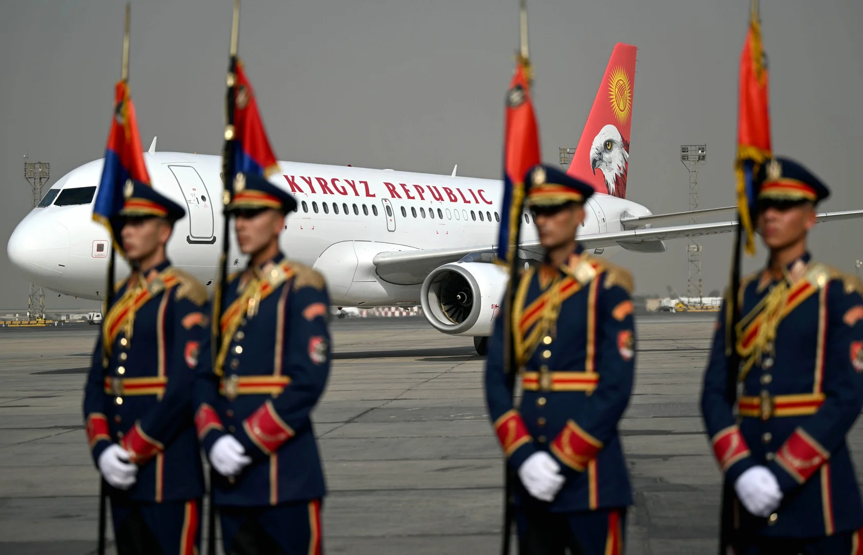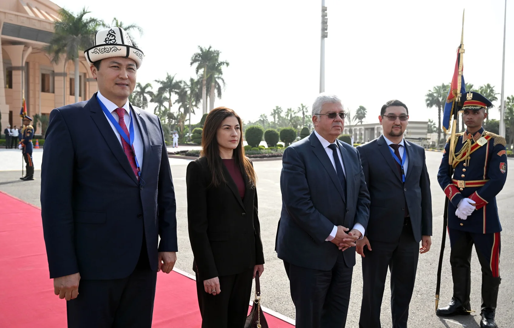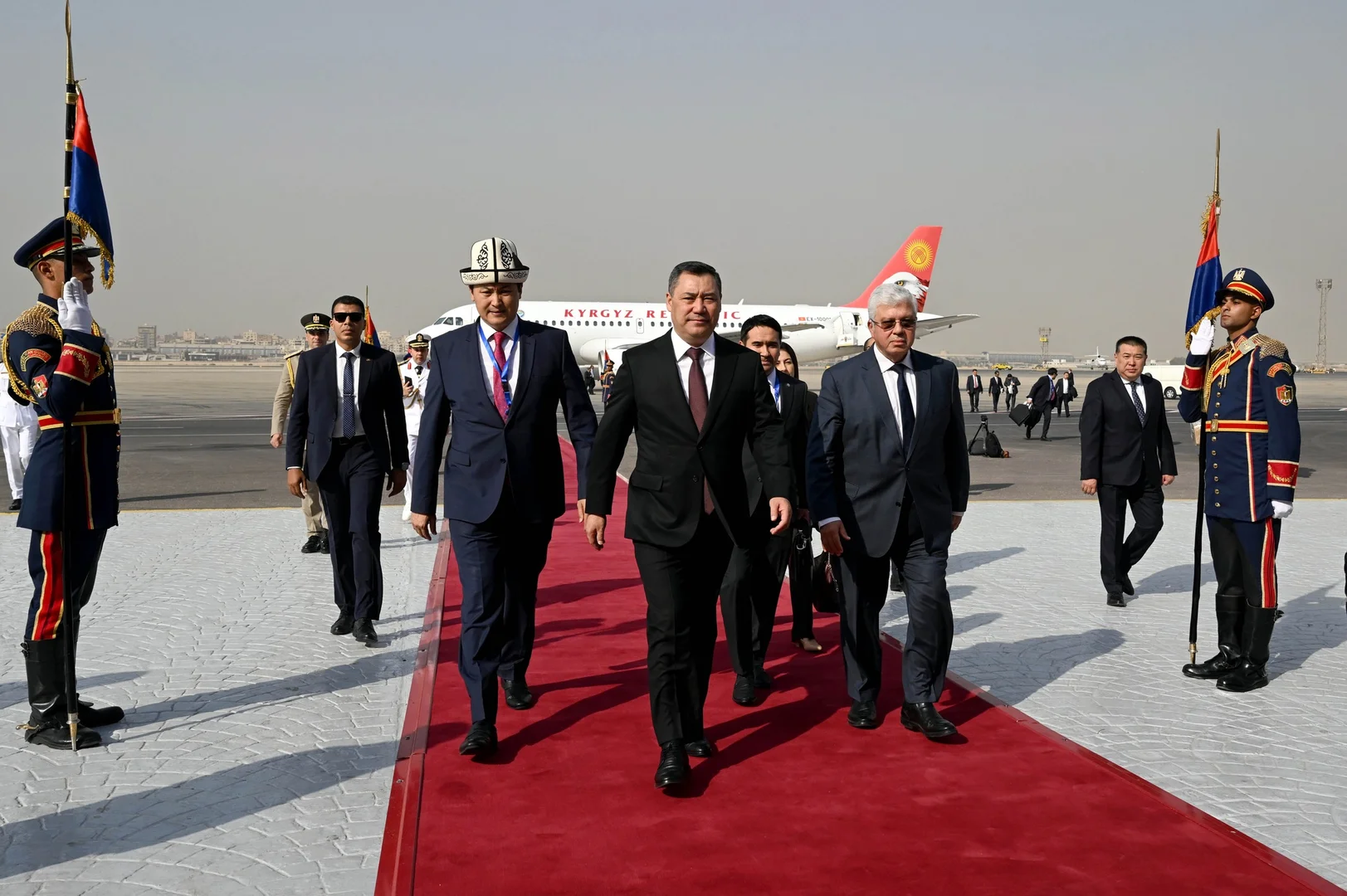 На территории аэропорта были развёрнуты флаги Кыргызстана и Египта, расстелена ковровая дорожка и выстроена рота почетного караула. В ходе визита запланированы переговоры между Жапаровым и Ас-Сиси, в рамках которых стороны обсудят важные вопросы двустороннего сотрудничества, а также международные и региональные проблемы.