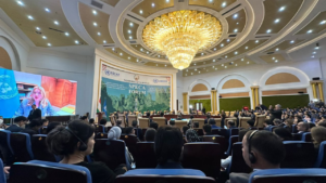 Затем Садыр Жапаров и Франк-Вальтер Штайнмайер поприветствовали членов делегаций и направились в фойе дворца, где президент Кыргызстана оставил запись в книге Почетных гостей.