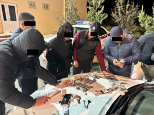 В ходе спецоперации подозреваемые были задержаны. Преступная группа состояла из граждан соседнего государства, ранее неоднократно судимых за аналогичные преступления. У задержанных изъяли два рации, пять мобильных телефонов, один бинокль, пять ключей от различных автомобилей, перчатки, отмычки и денежные средства в разной валюте, включая доллары США, евро, казахские тенге, сомы, индийские рупии и швейцарские франки. Все эти предметы были признаны вещественными доказательствами и приобщены к материалам уголовного дела.